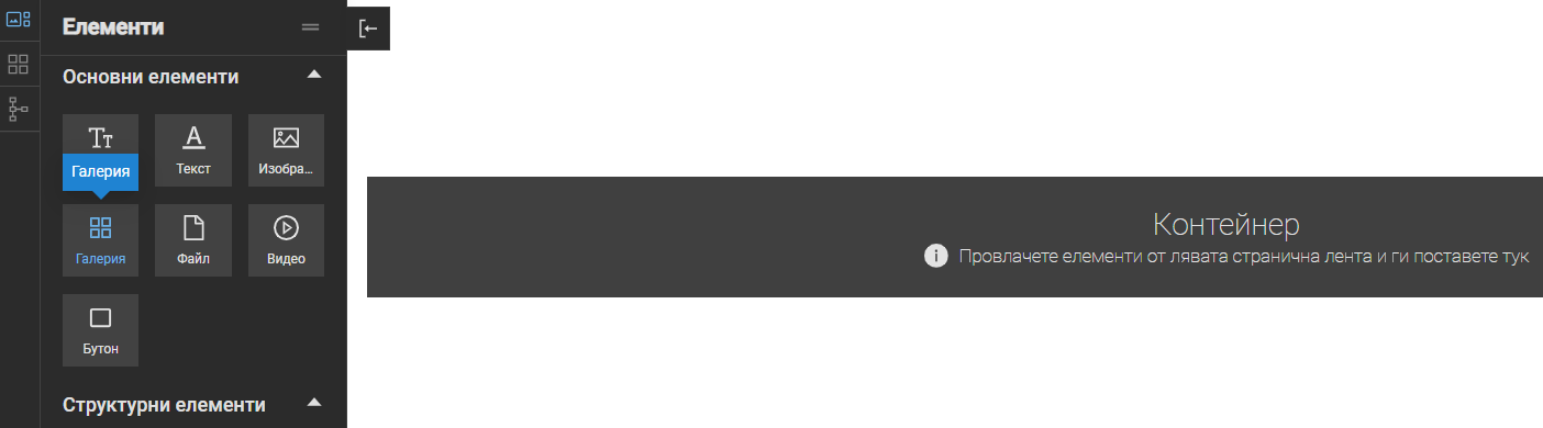 Влачим елемента до "Контейнер" и поставяме вътре.
