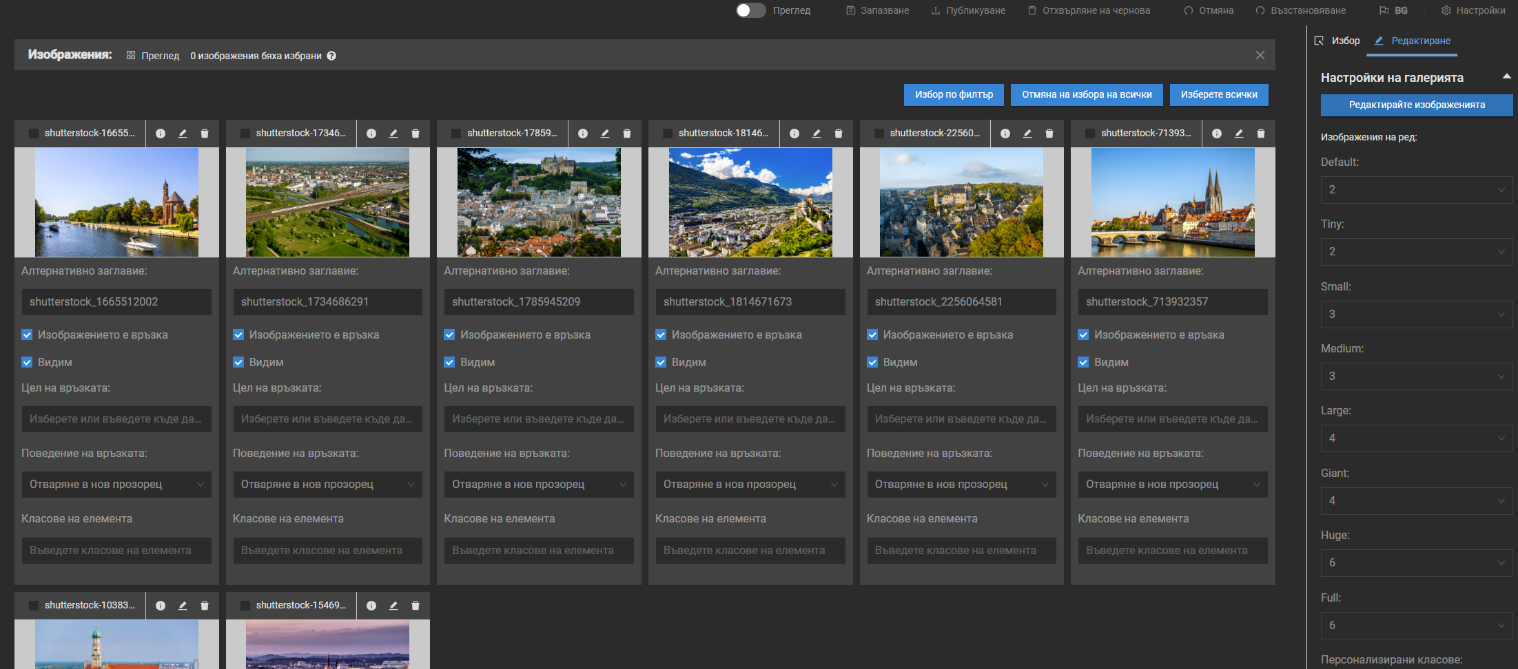 Избираме раздела "Редактиране". Тук можем да правим промени както на галерията от изображения като цяло, така и индивидуални и общи промени по изображенията.