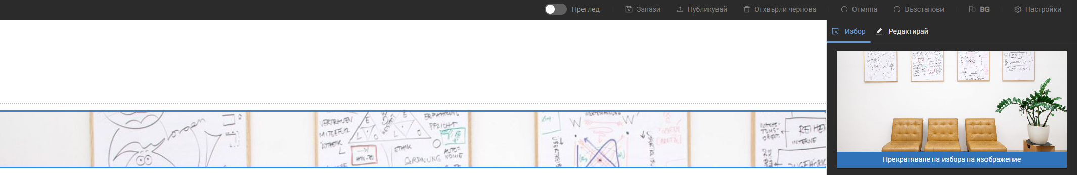 Отваряйки, лентата с настройките на контейнера, виждаме че подобно на елемента за изображение, можем също да добавяме снимка или графика, което след това се визуализира като фон на нашия контейнер.