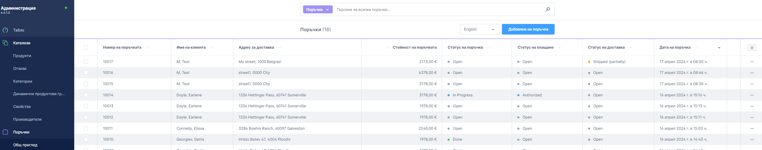 Преглед на списъка с всички поръчки, направени от вашите клиенти може да откриете на: Поръчки > Общ преглед